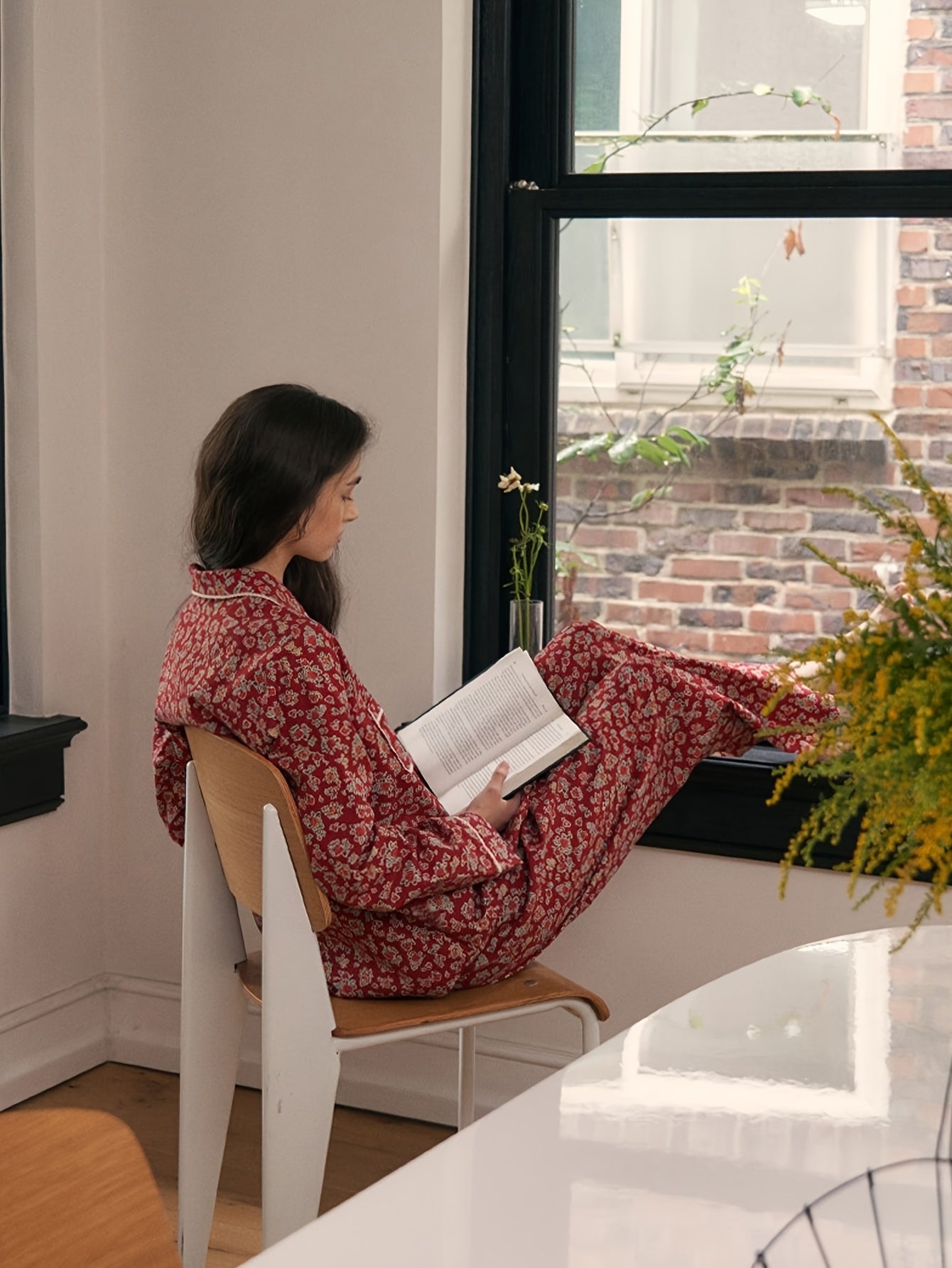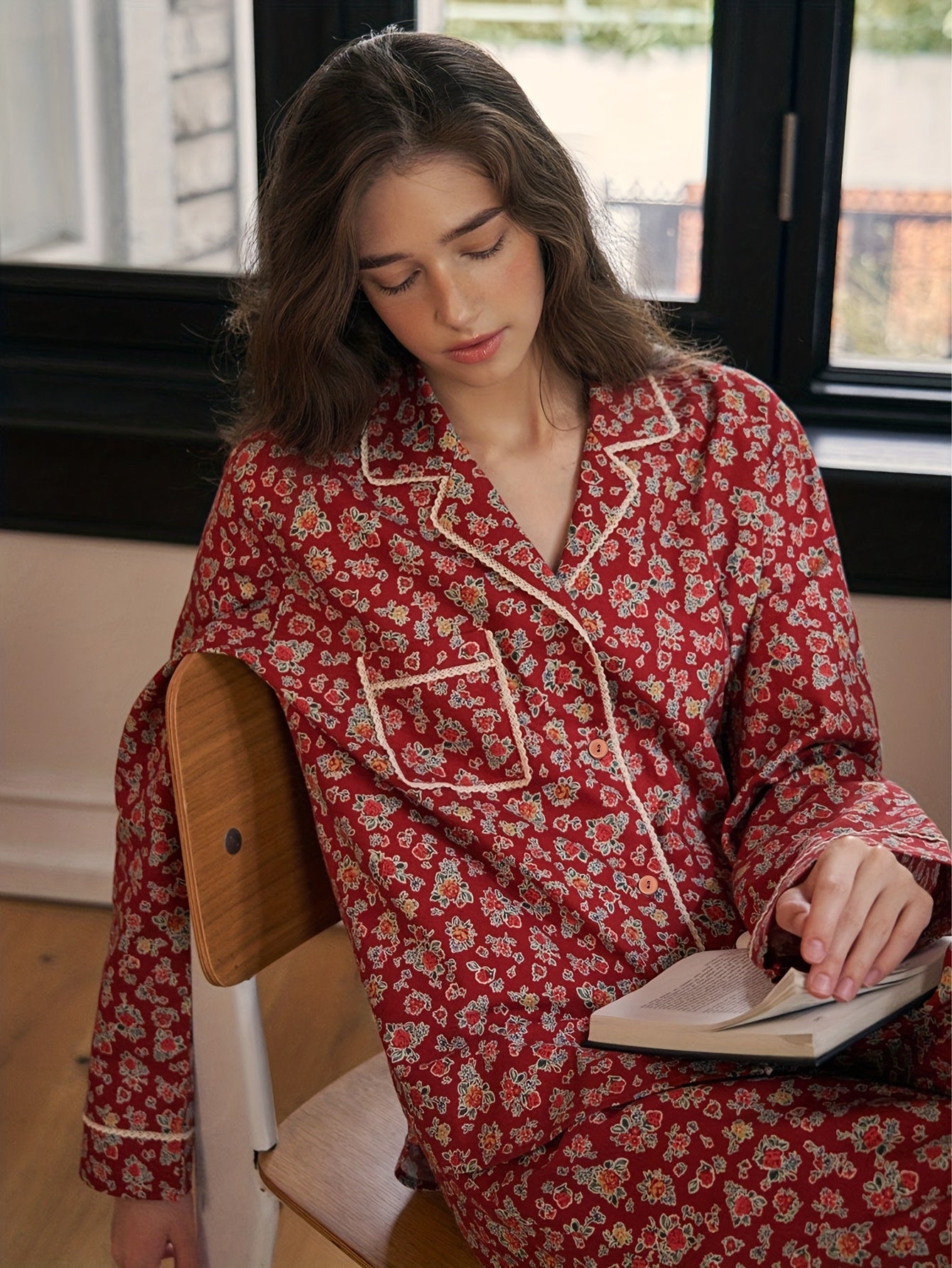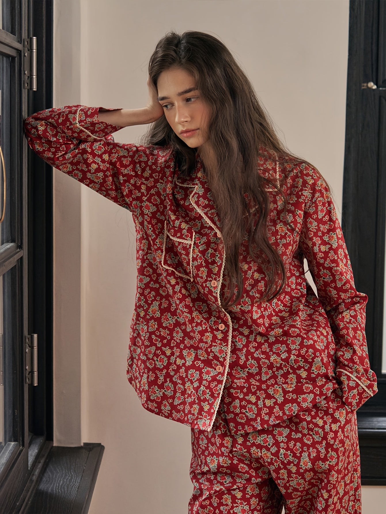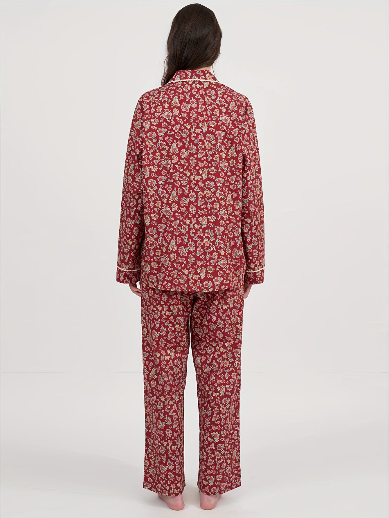 The rich ruby base paired with delicate floral motifs gives this pajama set a classic, homely feel — the kind that makes you want to slow down, unwind, and enjoy your me-time. The relaxed silhouette ensures all-day ease, while the contrast piping adds a refined, stylish finish.