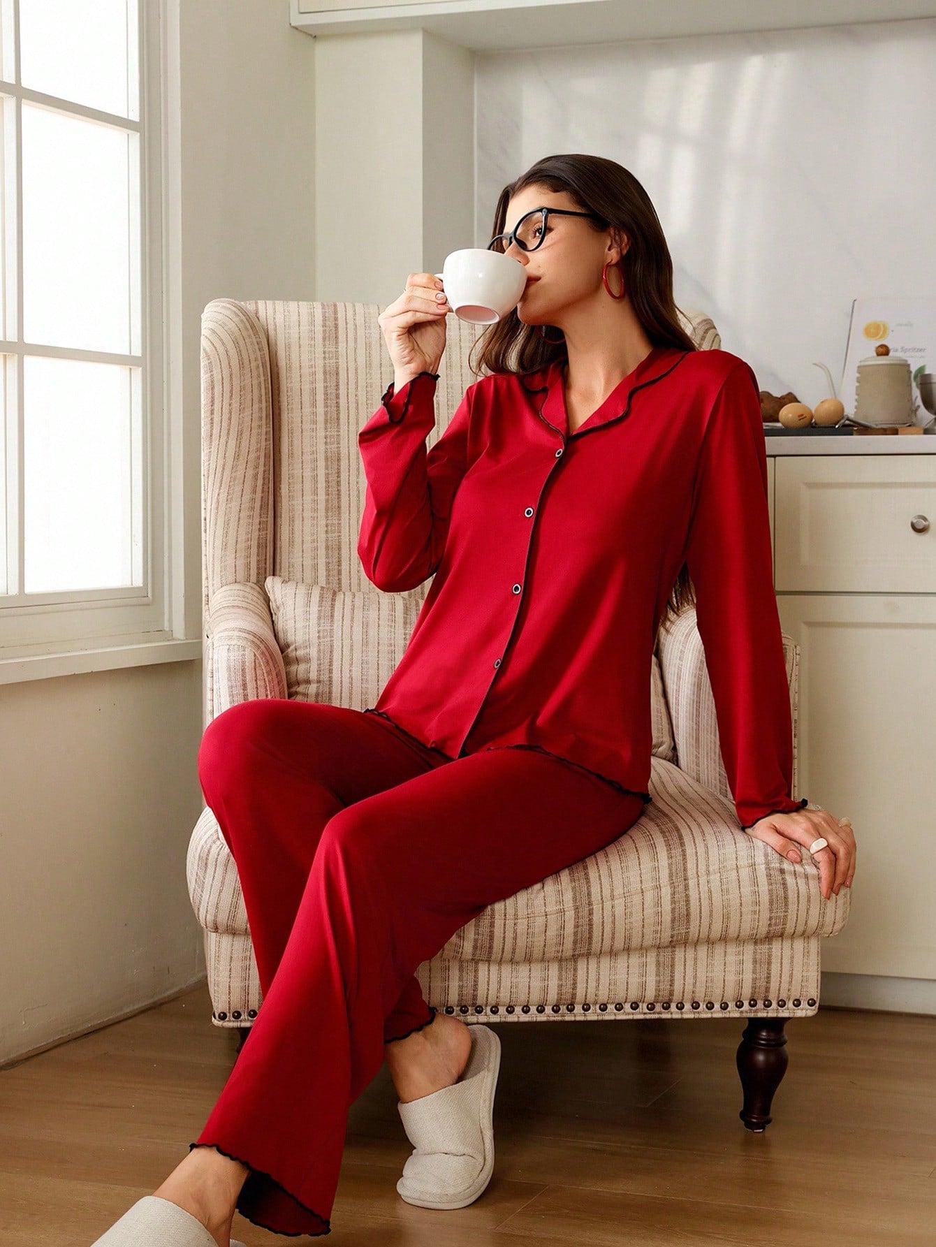 Slip into effortless comfort with The Girls Club’s Burgundy Bliss Pajama Set, designed for women who love style even in their downtime.