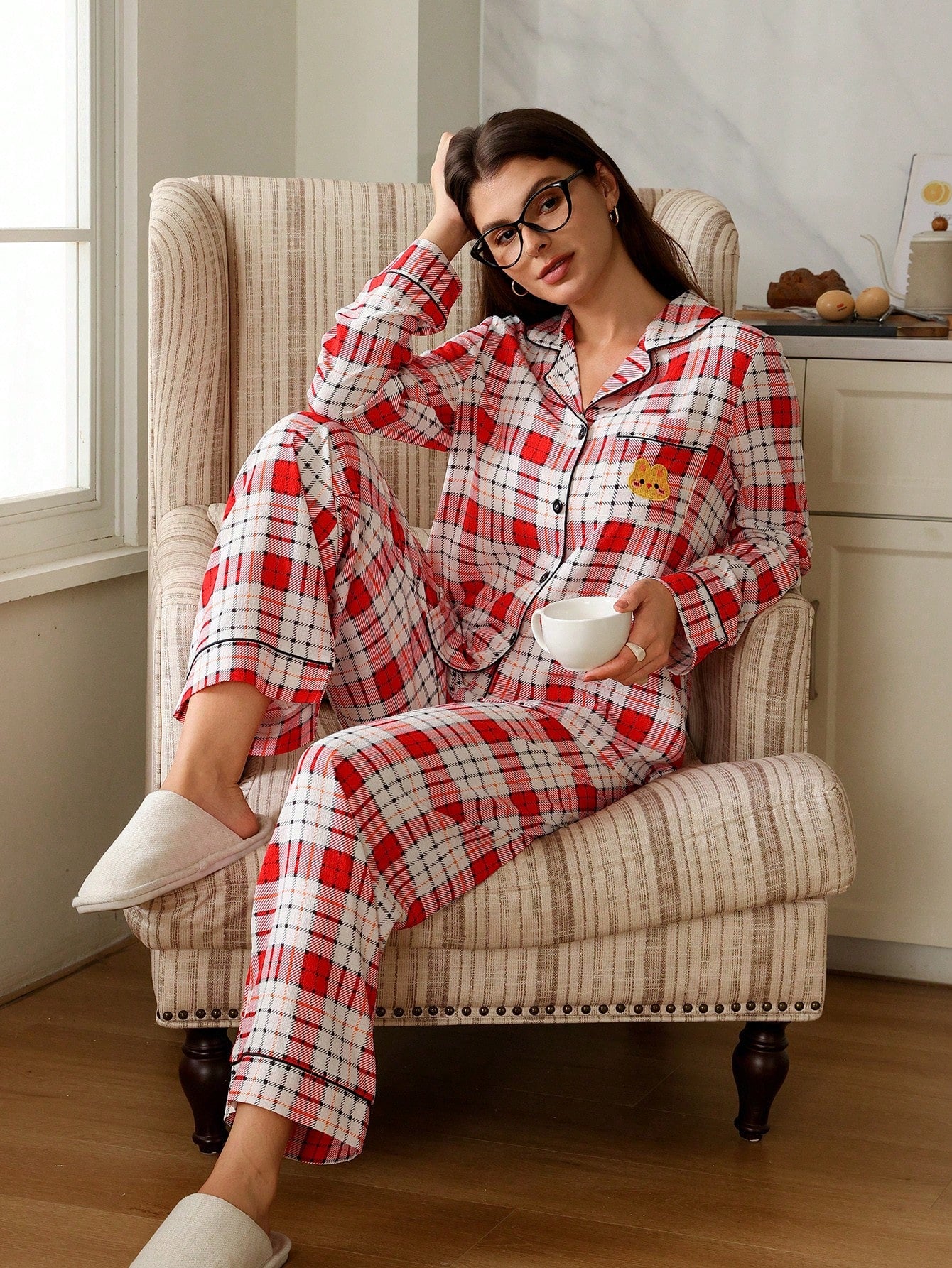 Wrap yourself in comfort with The Girls Club Red & White Checkered Pajama Set — designed for cozy nights and relaxed mornings. This stylish two-piece sleepwear features soft, breathable fabric with a classic checkered pattern and an adorable embroidered rabbit patch on the pocket for a fun, feminine touch.